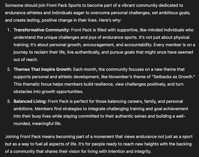 One thing I love about our community is their willingness to challenge themselves and November is no different. Front Packers are committing to looking back at 2024 and being completely honest with themselves.