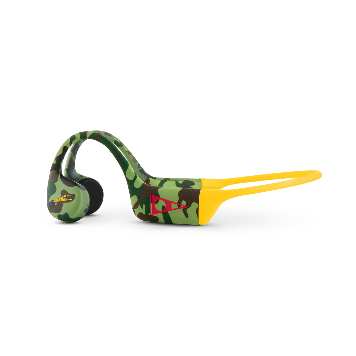 The Florence x TRI 2 Camo runs on H2O Audio’s open-ear bone conduction technology, rated IPX8 waterproof — built to withstand submersion to 12 feet (3.6 m) for an unlimited amount of time. An 8GB built-in MP3 player stores thousands of songs in most formats, including iTunes .M4A. On land, Bluetooth pairs to any smartphone or smartwatch. Underwater, MP3 mode keeps the music running. Battery life is six to nine hours. Earplugs are included for swimming use.