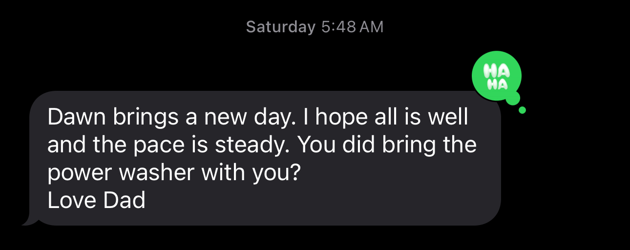 Is what my dad messaged me Saturday AM. And that settled me down. I was finally getting through the darkness of the night and could see things clearly again. I just needed to warm up. I was over being cold.