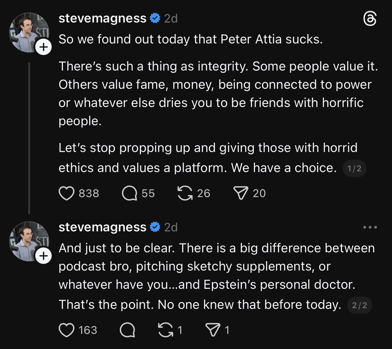 This moment isn’t just about Peter Attia. It’s just one example of someone people didn’t question – morally or professionally.