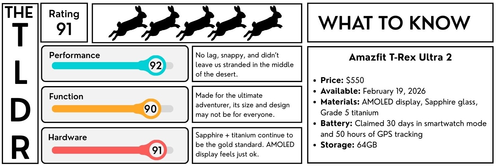 If you’re coming from Garmin or COROS, the question isn’t “can Amazfit hang?” anymore. If you want absolute ecosystem depth and endless sport profiles, Garmin still wins. If you want clean simplicity and long battery life with minimal noise, COROS continues to do that really well. But if you want an adventure-first watch, a killer app that gives you the big-ticket features without a paywall that is constantly upselling you, the T-Rex Ultra 2 may be it.